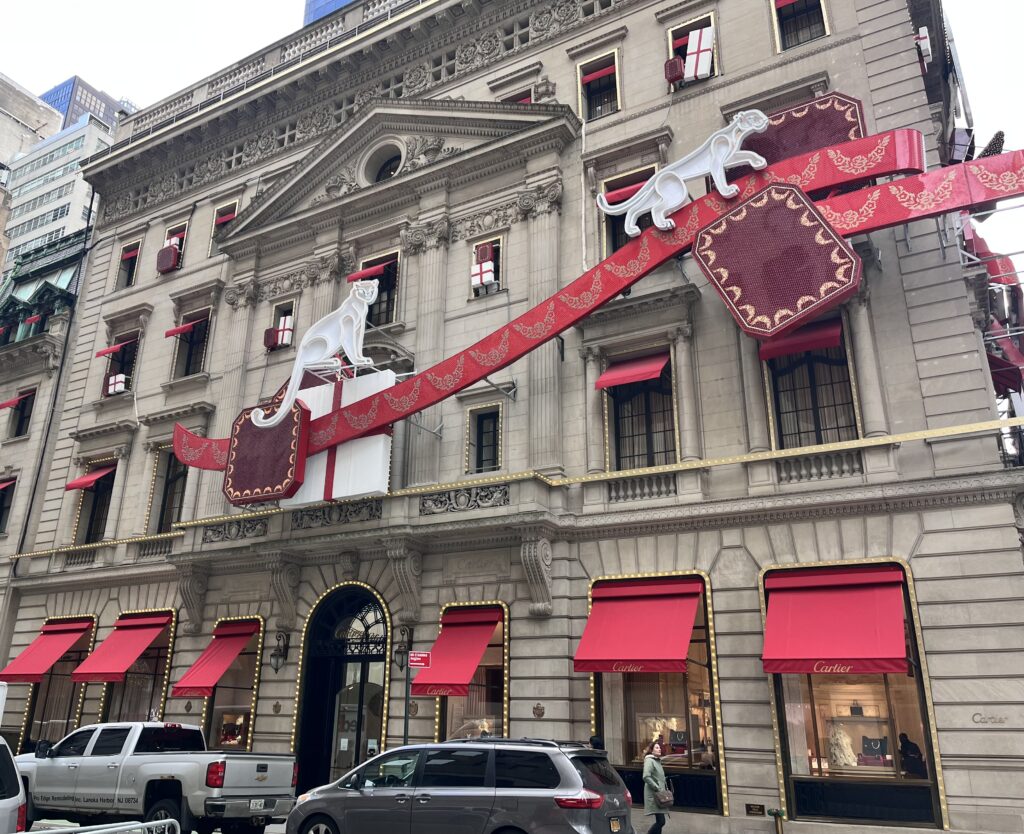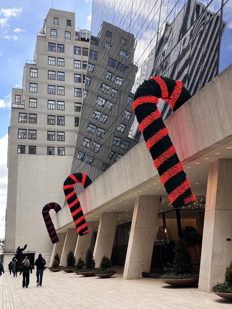 プラザホテルから5thアベニューへ向かう道中、大きなキャンディーケインがぶら下がっている建物が……!!