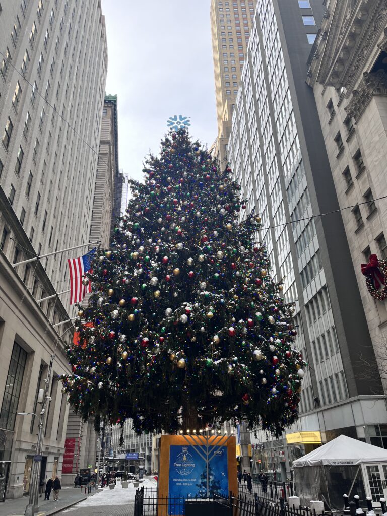 アメリカの資本主義社会を象徴するウォール街にも、大きなクリスマスツリーがありました!
